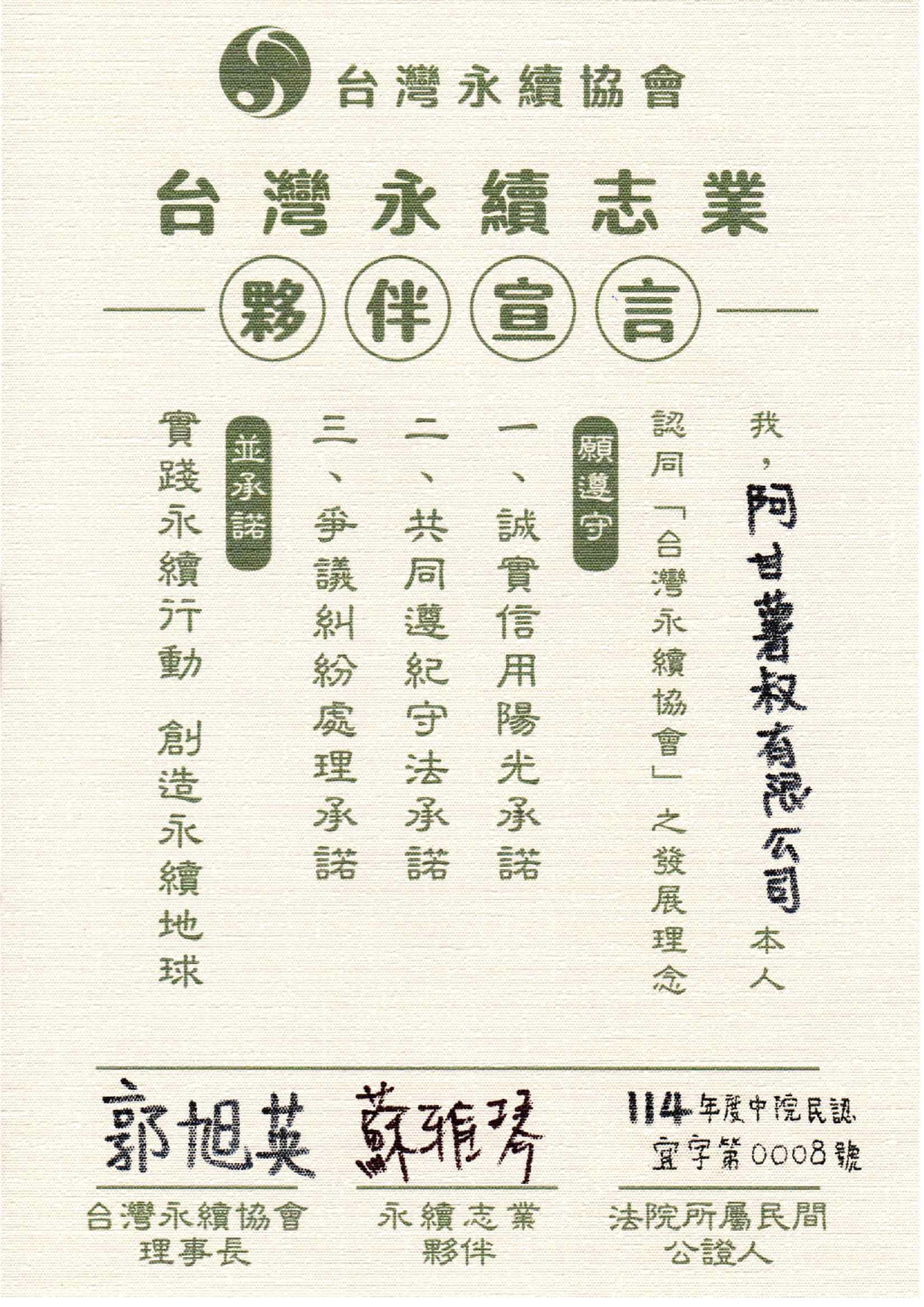 讓我們攜手努力,為台灣和全球的永續發展貢獻一份力量!
